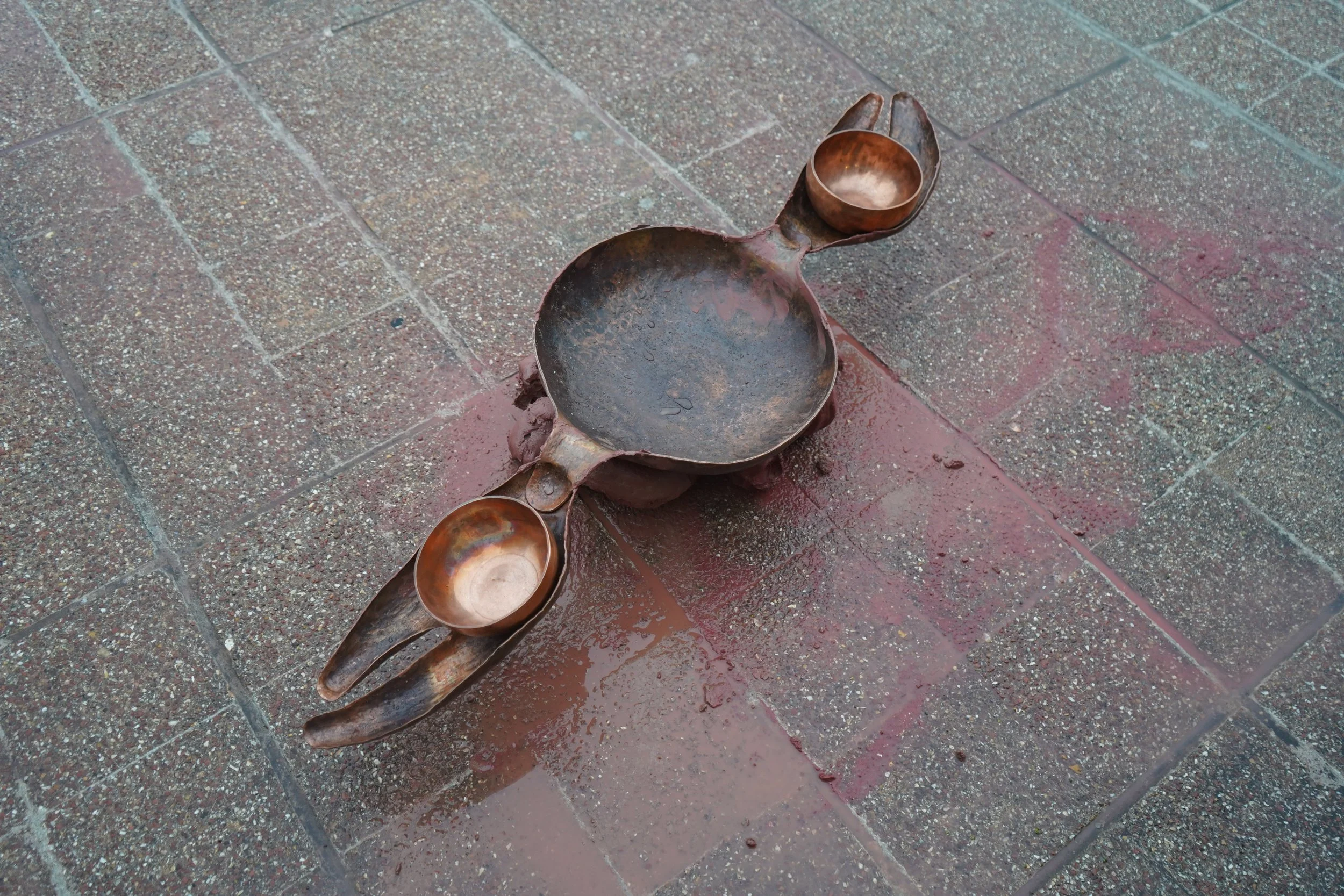 The film possesses a visceral tactile quality. The artist’s fingers are laced with cobalt metallic nails. The sound of these clutching onto the contours of rocks, ticks like a clock. They scratch and clasp at the velvet fabric, grasping for something or perhaps some being to hold onto. Following the locked gaze with the seal, these nails dig into a supple cuttlefish bone, leaving imprints in its flesh. The camera hovers over these markings in the bone, emerging like a transcript of the chance encounter.